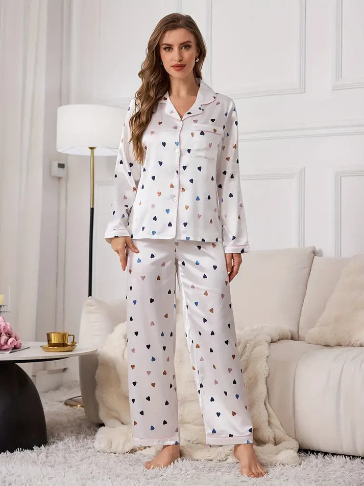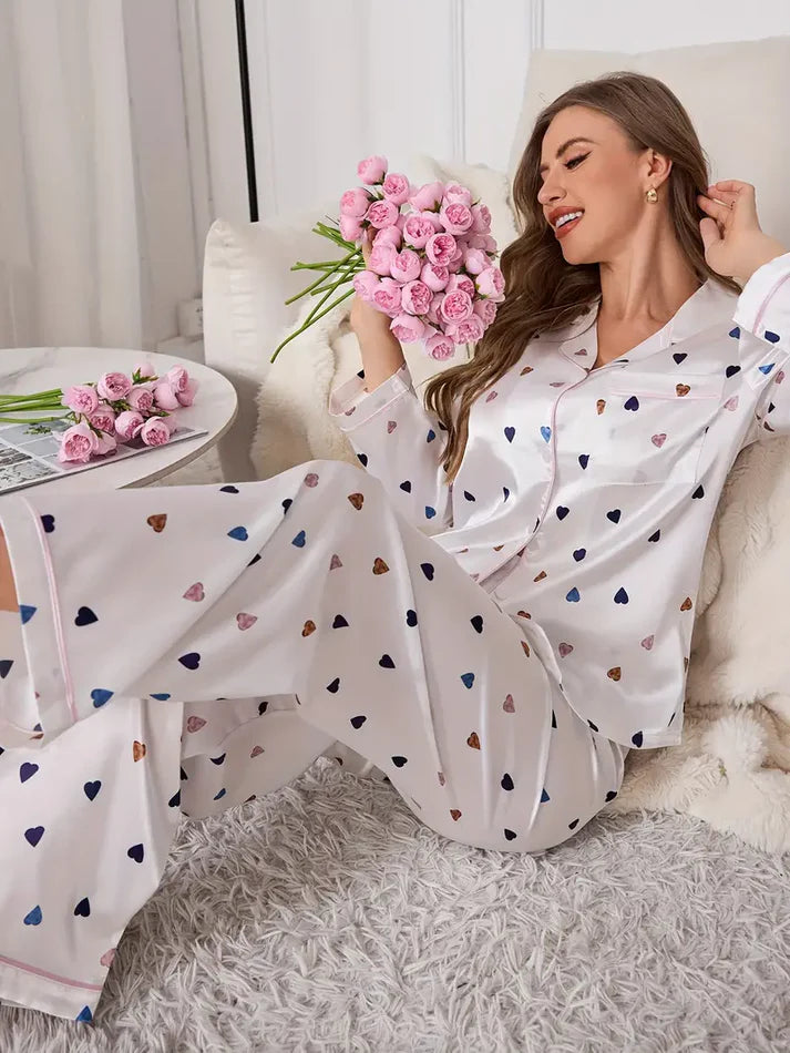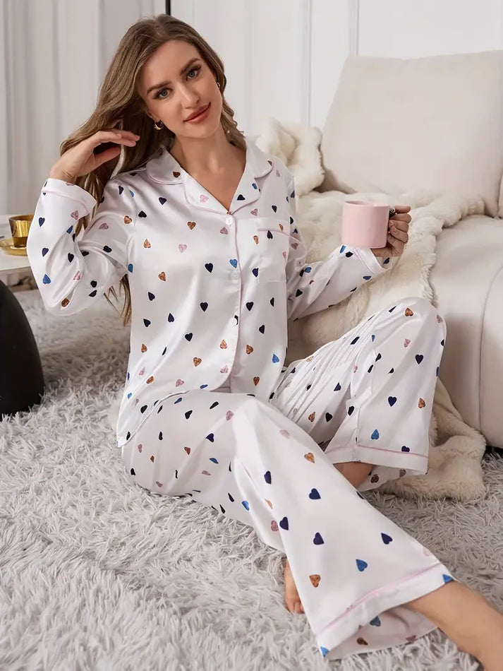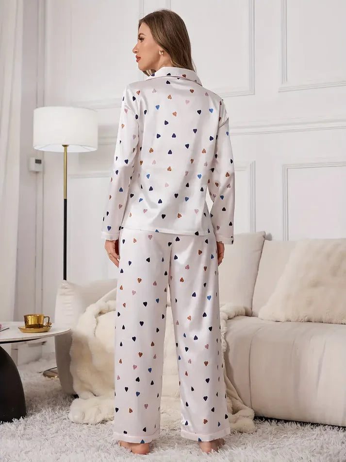 Lycra Blend Feel Printed Night Suit – Heart Pattern